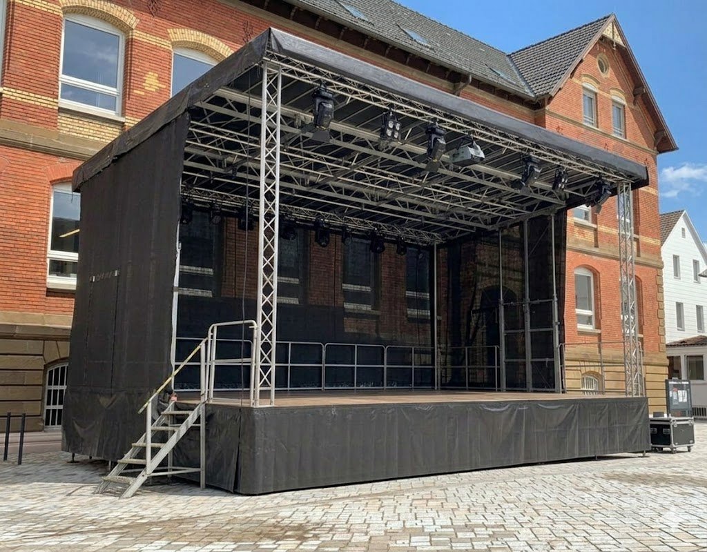 Aufbauzeit: Trotz der Größe in nur 60 bis 90 Minuten spielbereit (unglaublich schnell im Vergleich zu konventionellen Traversenbühnen).