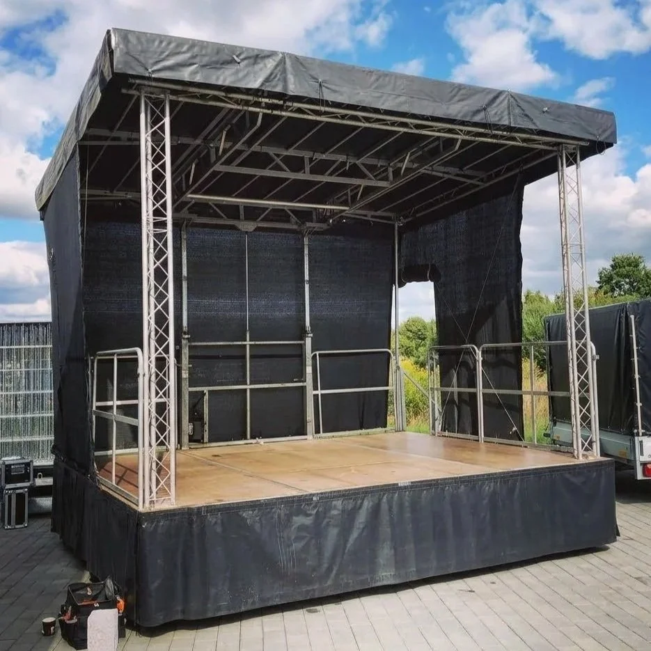 Absolut. Unsere Bühnen sind für hohe Windlasten zertifiziert. Die Dachplanen sind wetterfest und schützen Künstler sowie Technik zuverlässig vor Regen. Bei extremen Unwetterwarnungen stehen wir als Technik-Partner bereit, um die Bühne innerhalb von Minuten in einen gesicherten Zustand zu bringen.